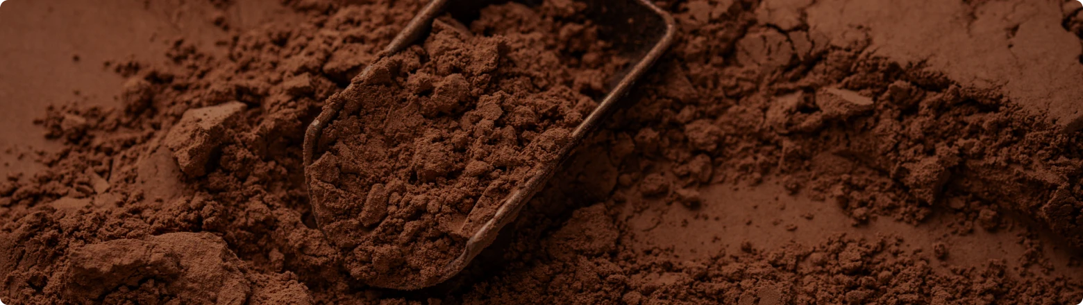 Natural, alkalized and black cocoa powder — 16 types, from light brown to jet black, made in our own certified facility. We handle the full chain from bean sourcing to finished powder, so what you get is factory-direct quality with full traceability. If your product needs the right color, the right flavor and the same result every batch, that is what we do.